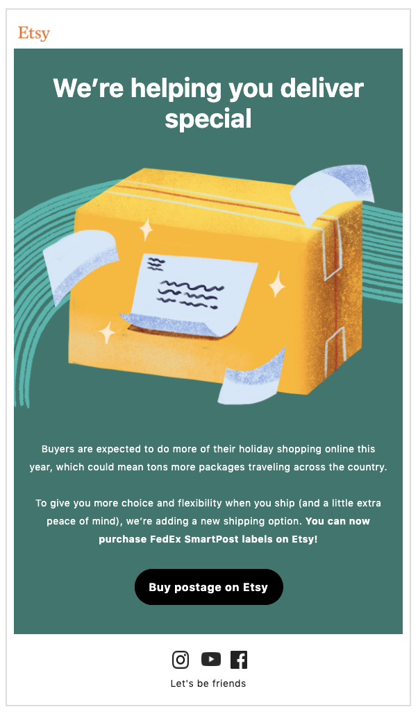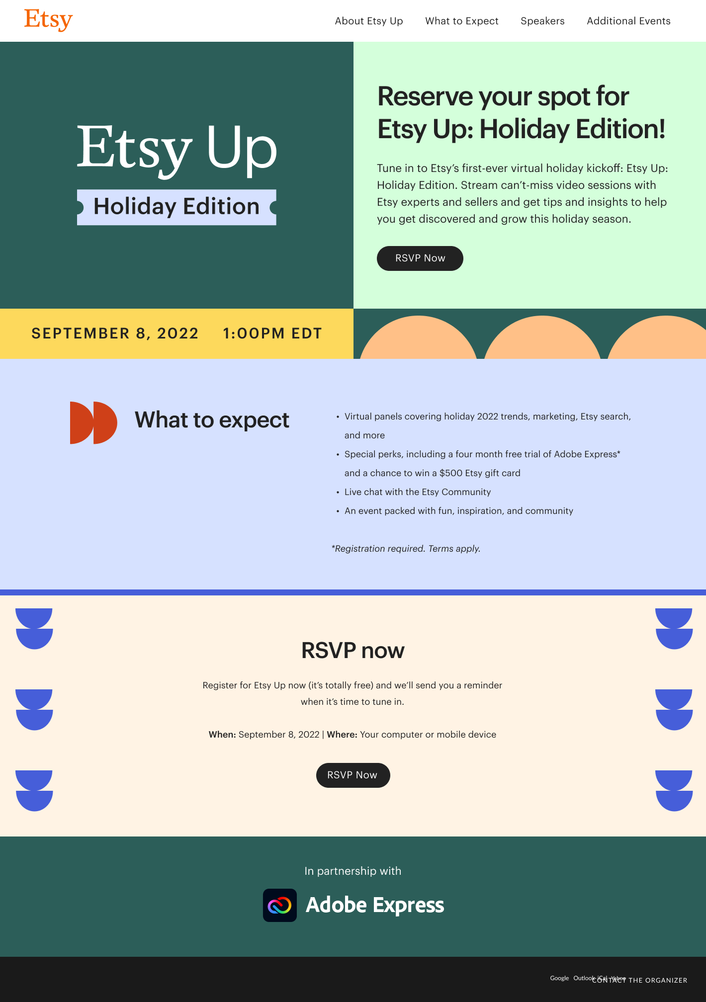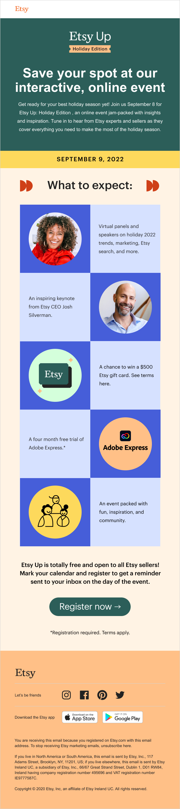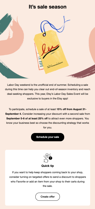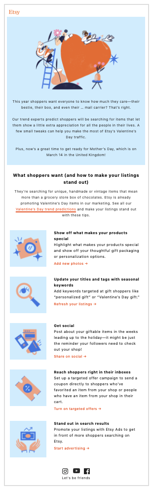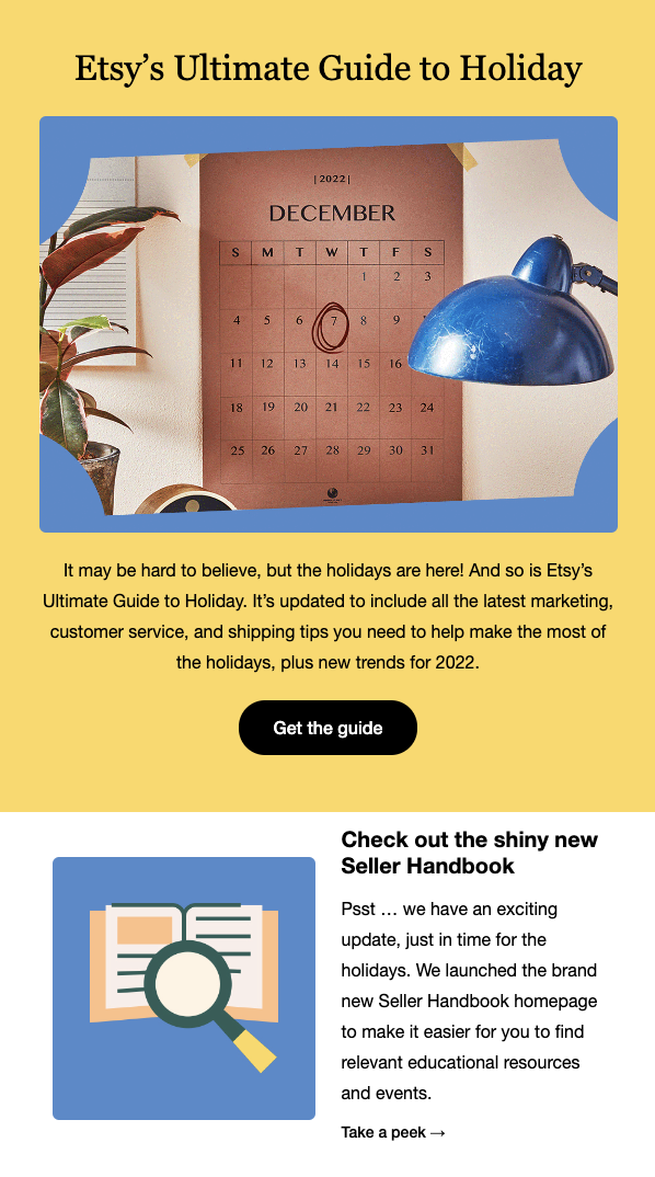- Your Guide to Etsy’s 2022 Holiday Sales Events: Blog post to drive participating in Etsy’s sales events.
