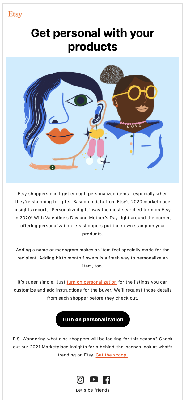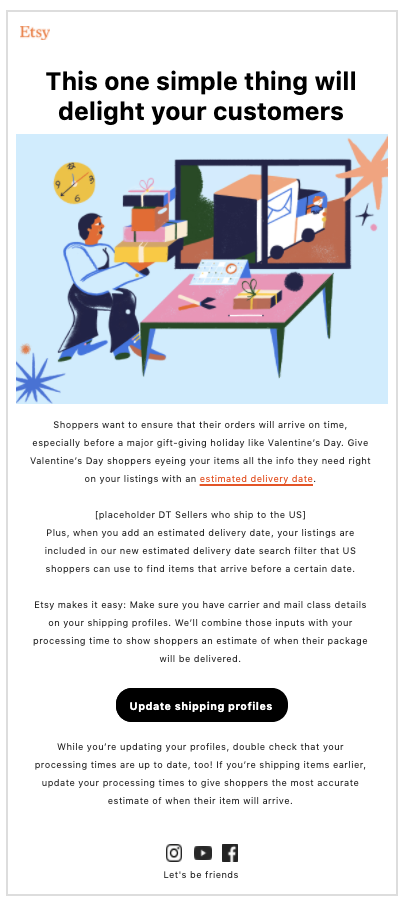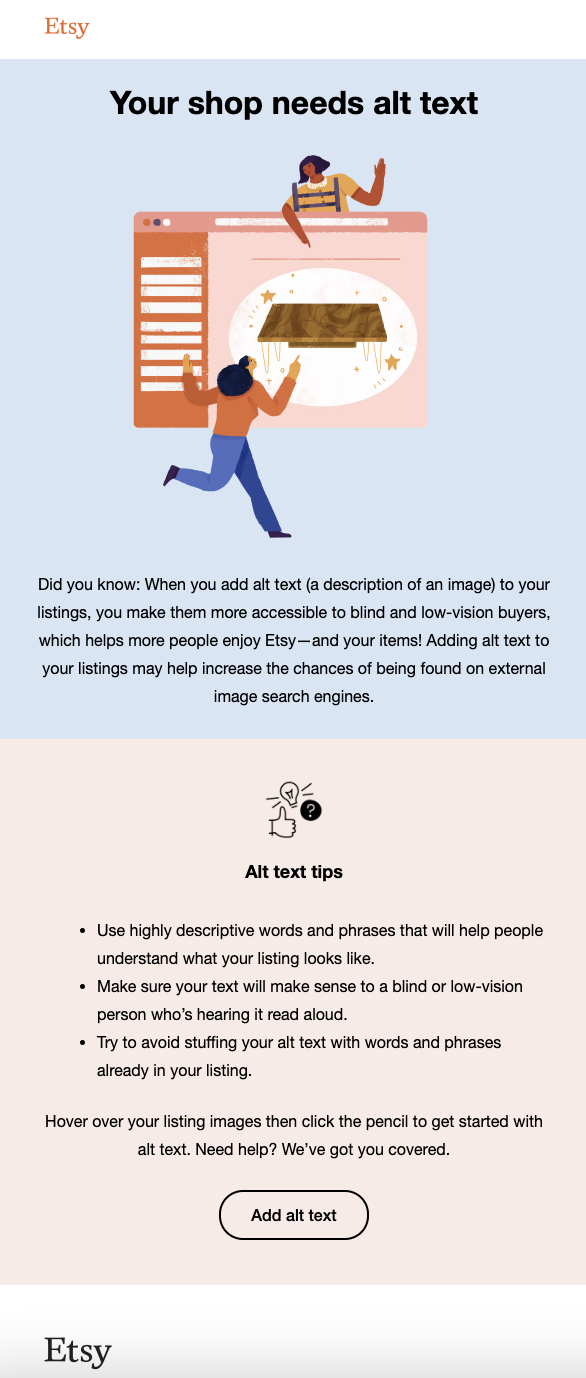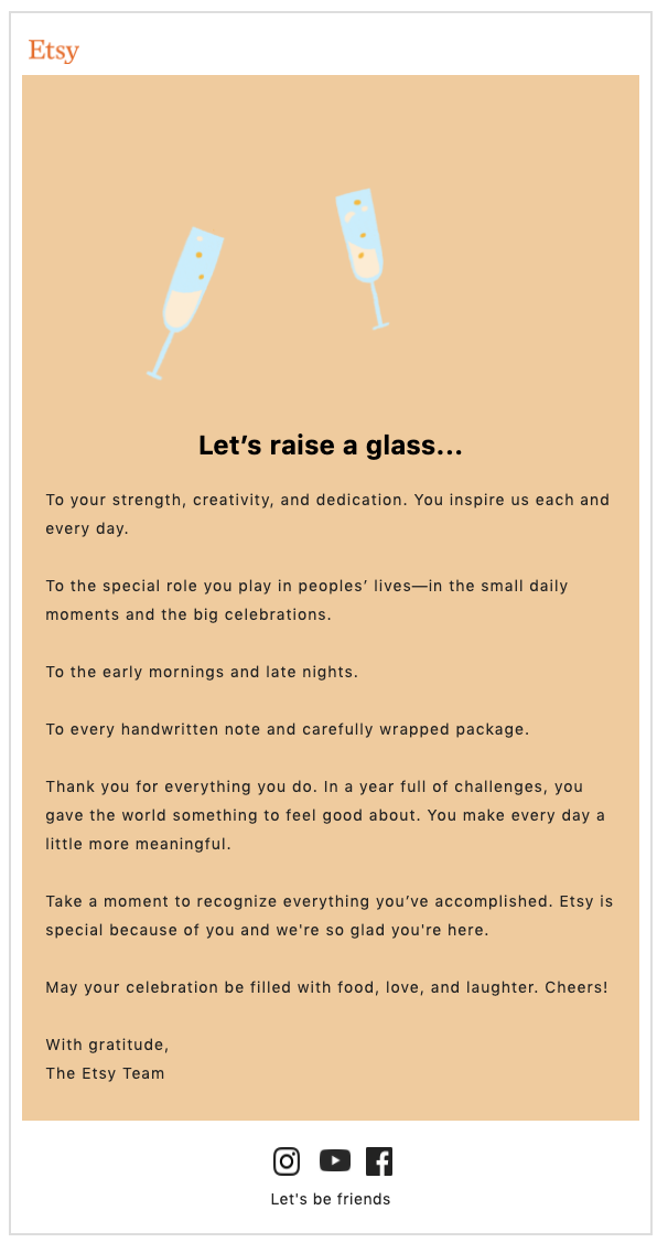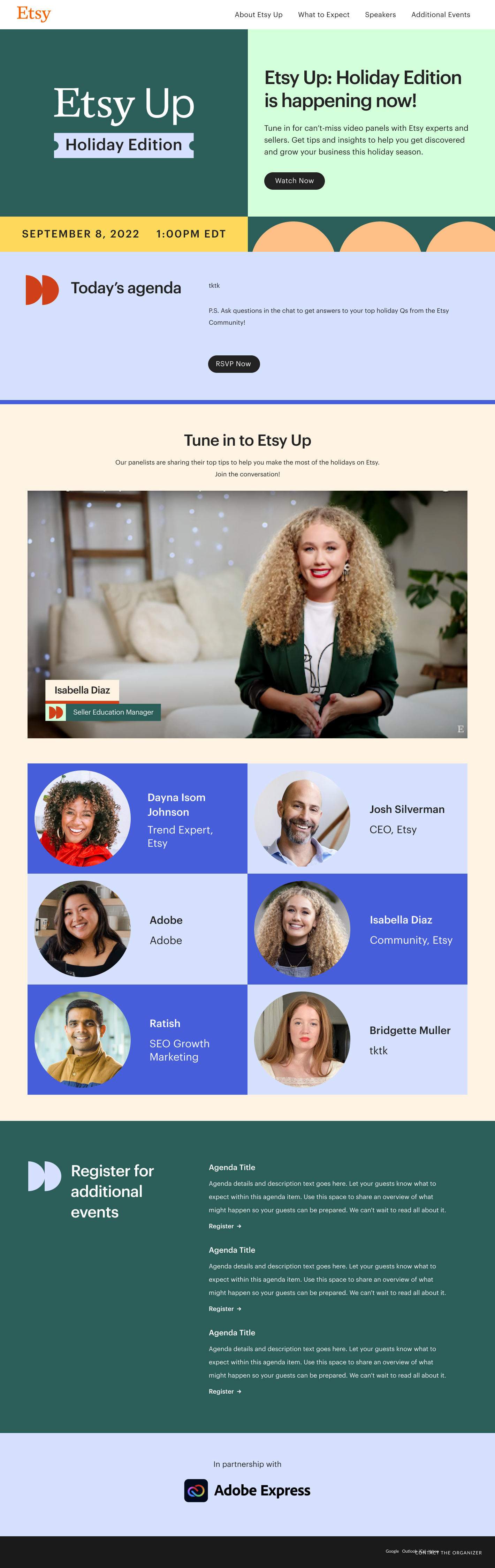 - Your Guide to Etsy’s 2022 Holiday Sales Events: Blog post to drive participating in Etsy’s sales events.