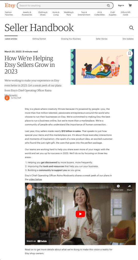 Created and led content and marketing campaigns designed to directly address top Voice of the Customer concerns, including an education campaign to address top misconceptions about Etsy’s policies and enforcement, which resulted in positive sentiment and huge engagement numbers.