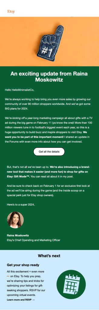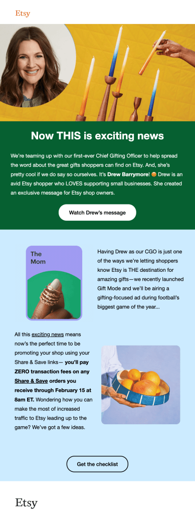 Delivered a multi-channel brand building and product adoption campaign activating sellers around Etsy’s first-ever Super Bowl ad that led to a 598% increase in adoption of Share & Save.