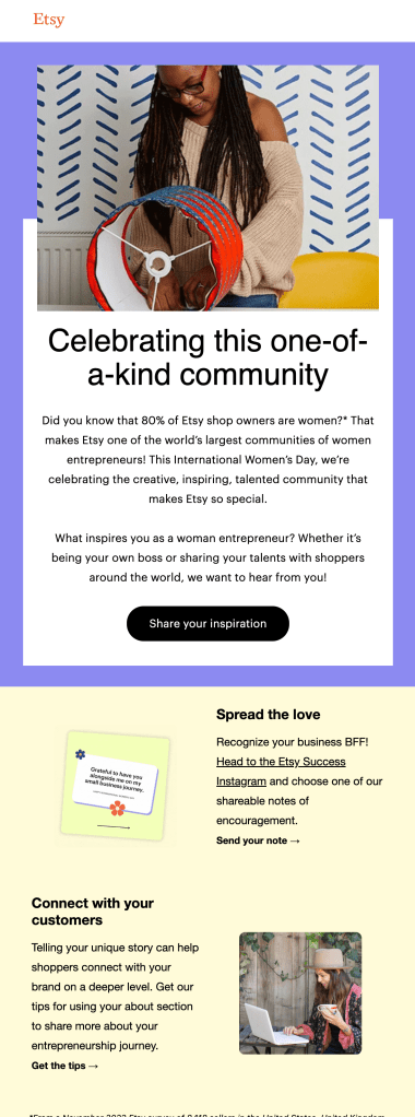 When users told us they wanted recommendations to feel more tailored to what they sold, I created a scalable process for delivering inventory insights from Etsy’s merchandising team directly to sellers via targeted, personalized emails and in-app messages.